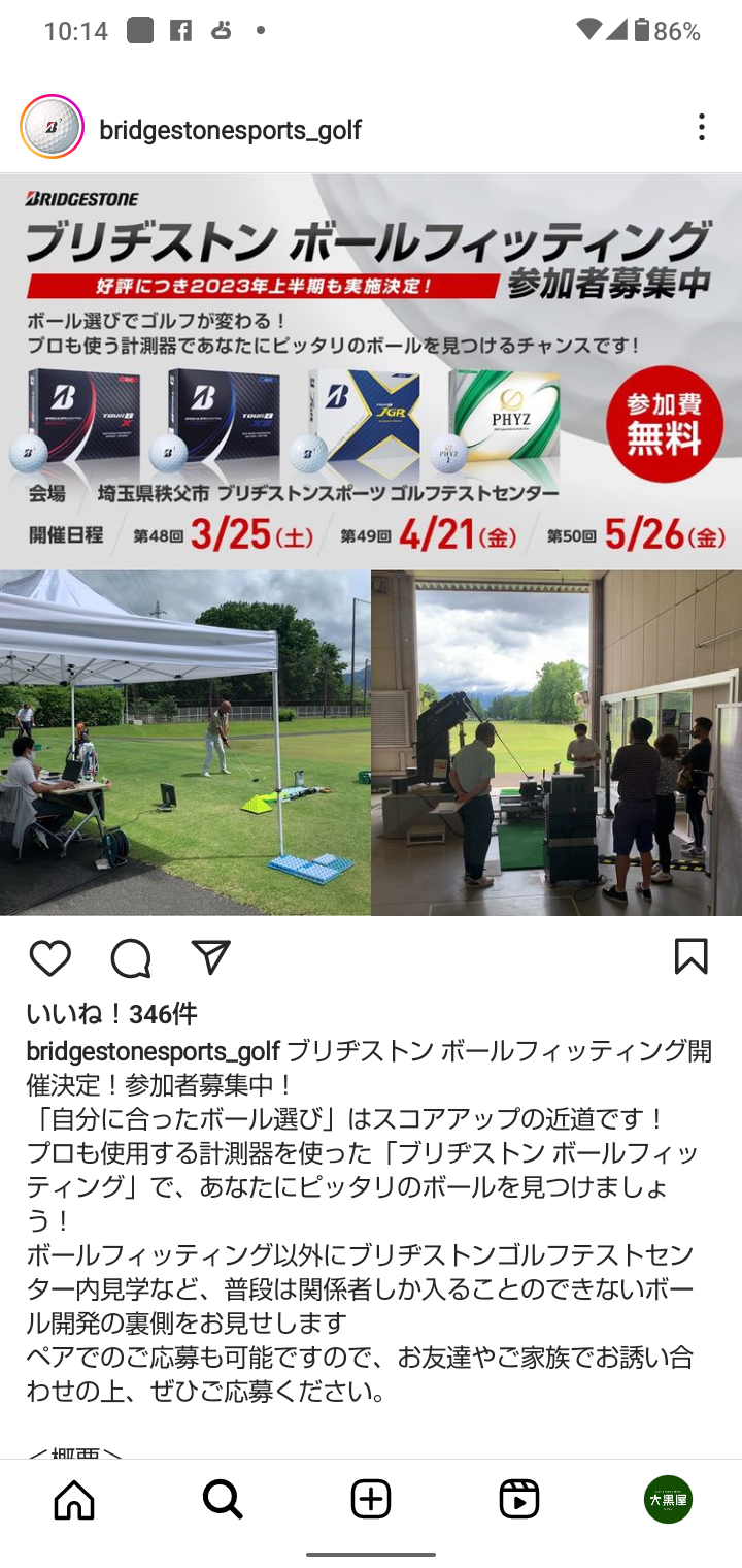 参加ご希望の方は、ブリヂストンゴルフのホームページや、インスタグラムの方から、問い合わせや、申込みしてみてください。