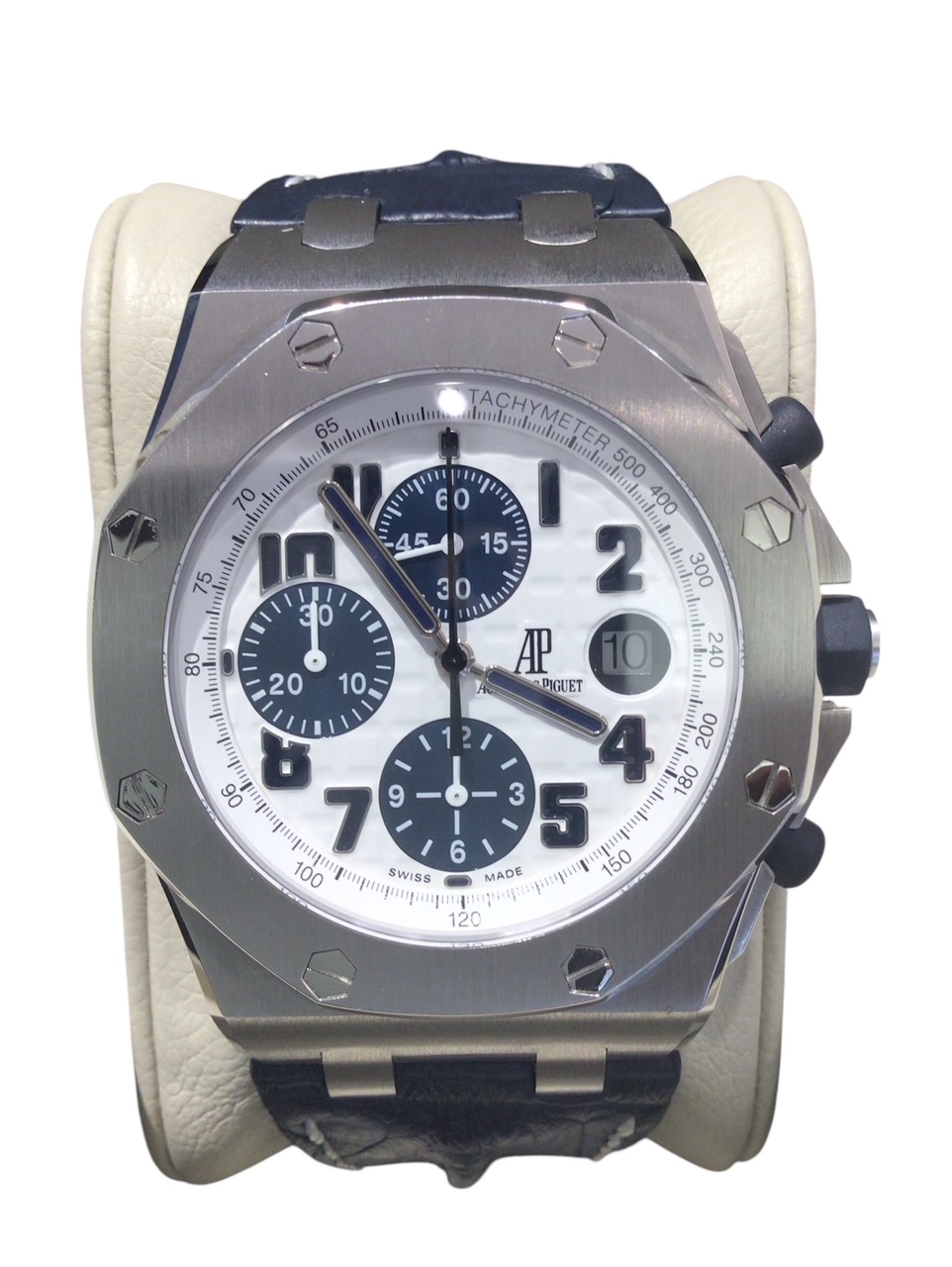 This Royal Oak has a pure white dial with effective use of blue for a cool impression.