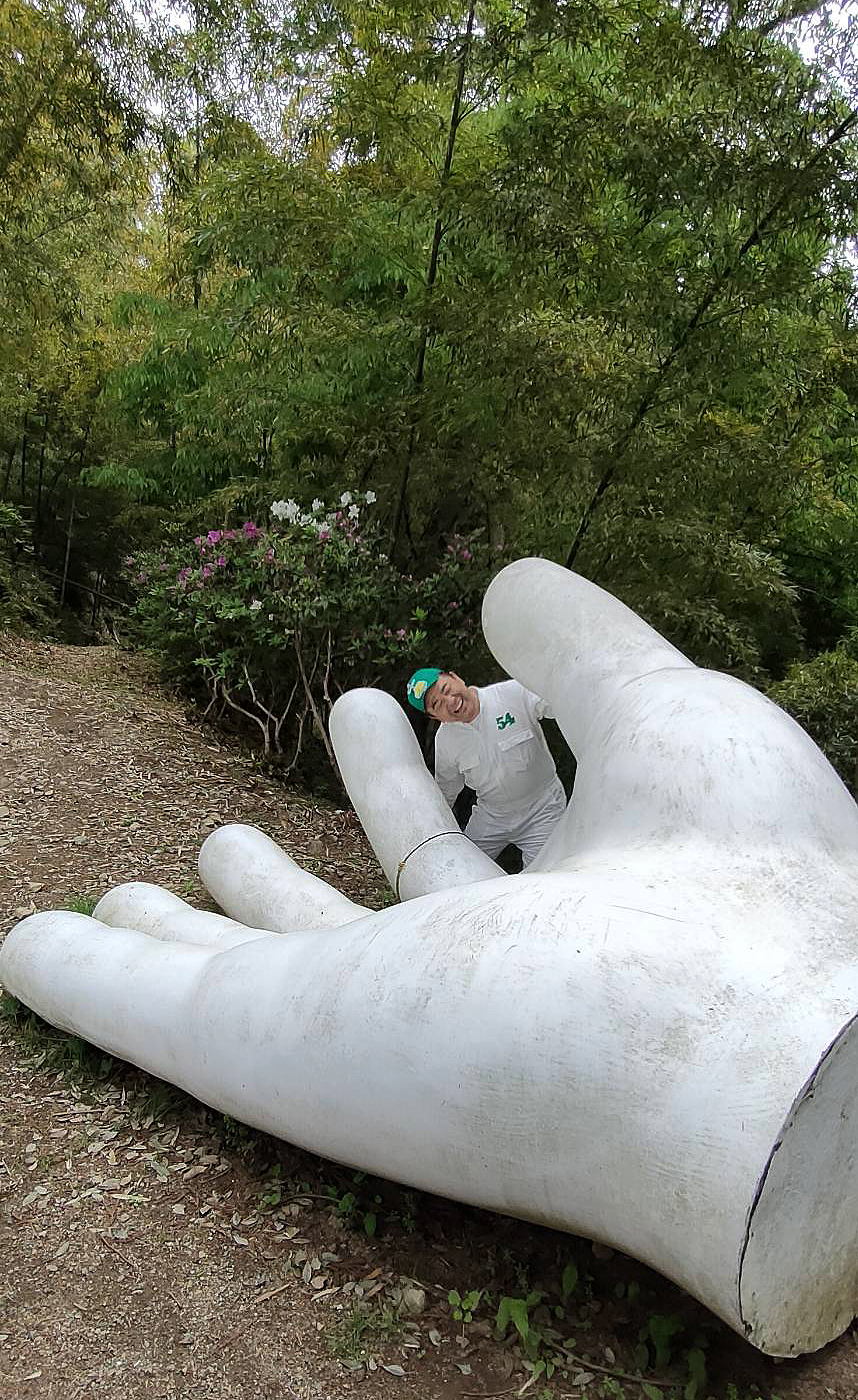 一番目に止まるのは、芸術家から寄贈された、巨大な白い両手のオブジェです(^^)/
