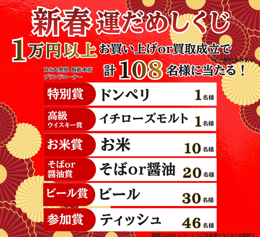 DS大黒屋 飯能本店では、来年もお客様に喜んでいただけるイベントやキャンペーンを多数企画しております。