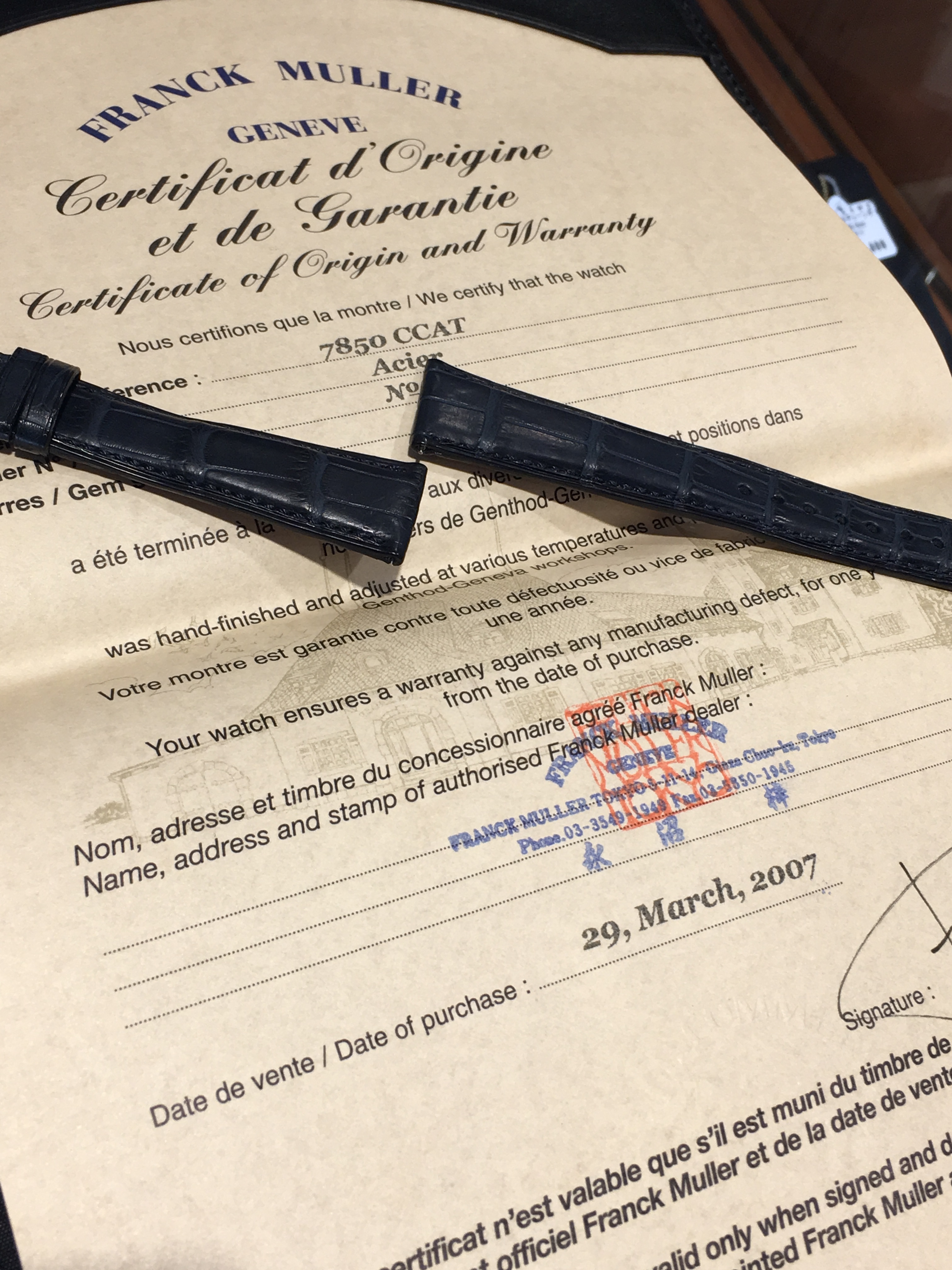 さらに今回買取のお品は国内正規ギャランティーに加え、フランク・ミュラー純正の革ベルトもついております!!