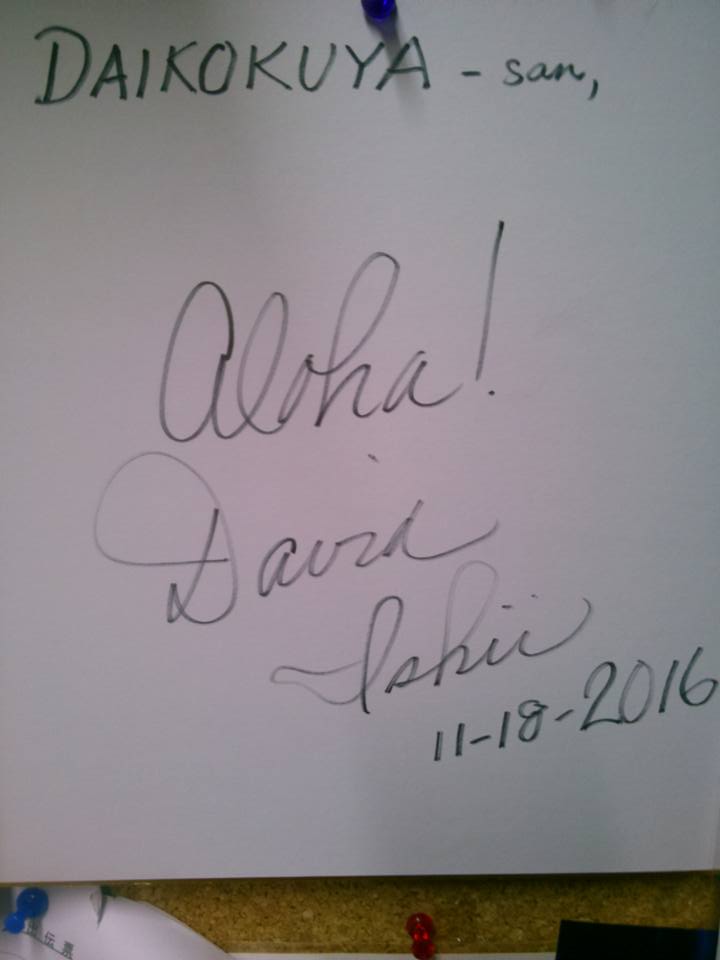 毎年、参戦しているデビッド・イシイプロは、大黒屋にも遊びに来てくれて、サインを頂きました。