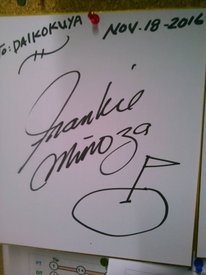 店内には、一緒に遊びに来てくれたフランキー・ミノザプロ、グレゴリー・マイヤープロと撮影した写真や、頂いたサインを掲示しておりますので、ご覧ください。