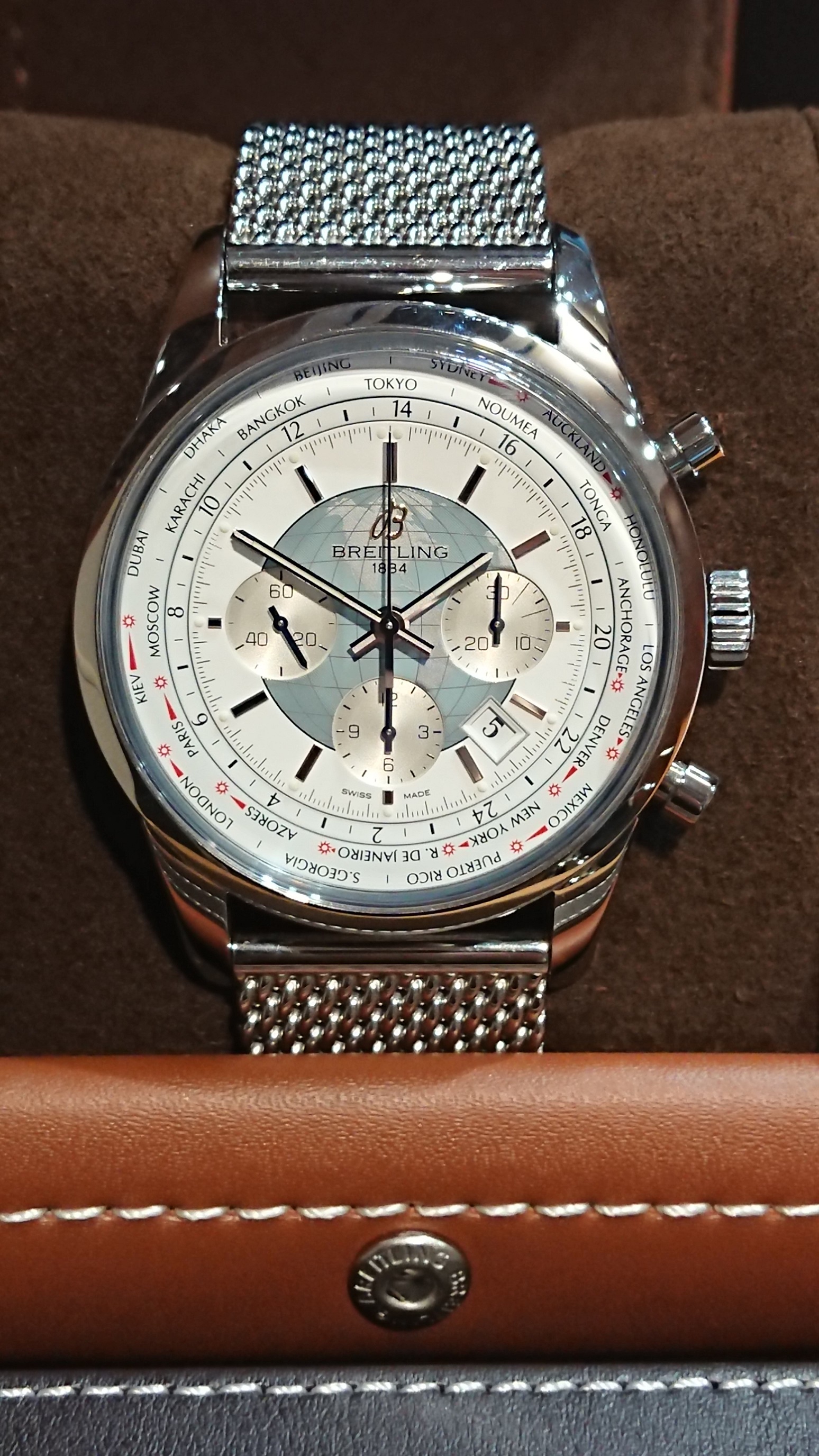 こちらの商品は1960年代のブライトリング初のGMT機能付きユニタイムを復刻した
